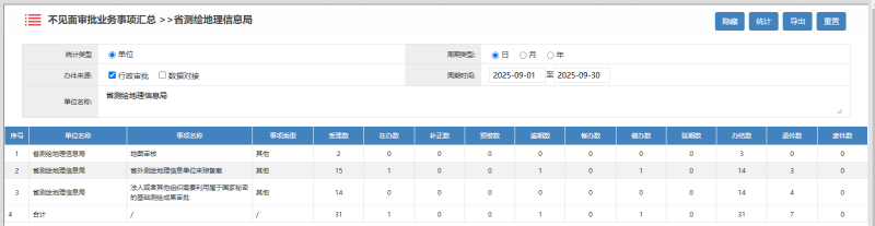 2025年9月海南测绘地理信息局行政许可办理统计