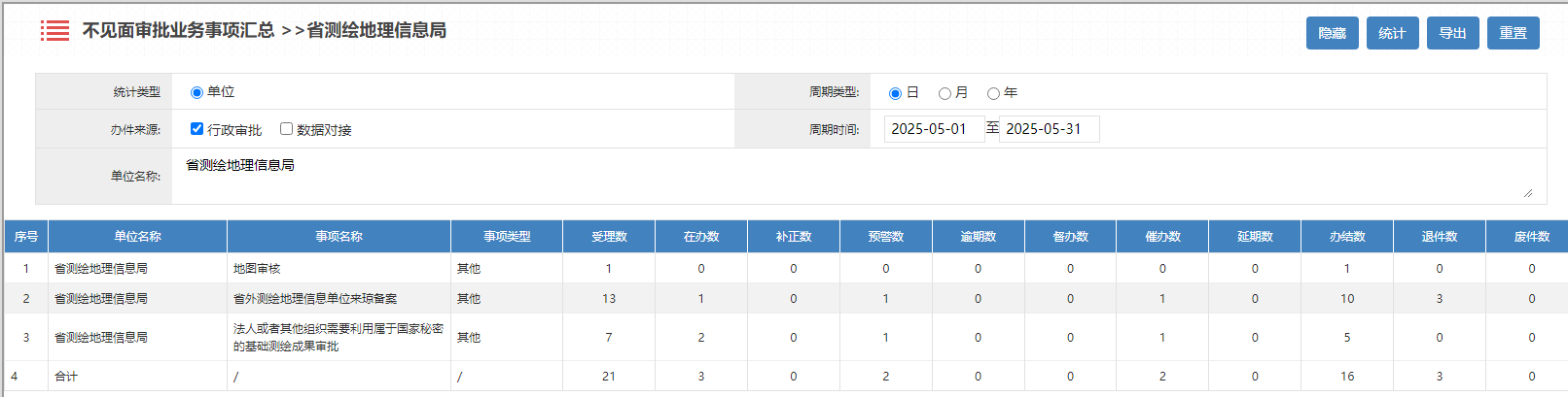 2025年5月海南测绘地理信息局行政许可办理统计