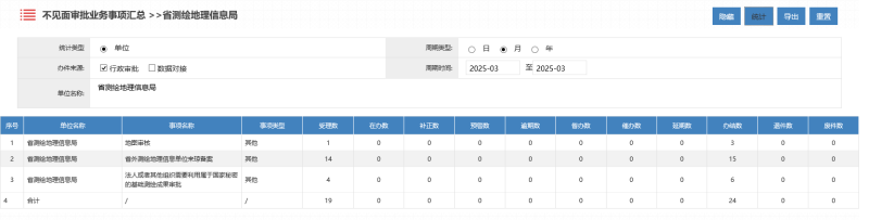 2025年3月海南测绘地理信息局行政许可办理统计